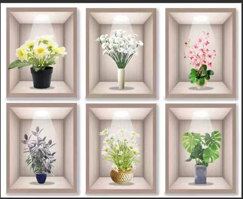 প্রতিটি স্টিকারে রয়েছে সুন্দর ফুলের সাজ ও বাজা (vase) ডিজাইন, যা দেয়ালে লাগানোর পর একদম রিয়াল-লুকিং 3D ভিজ্যুয়াল তৈরি করে। যেন আসল ফুলের ভাস সজ্জা!